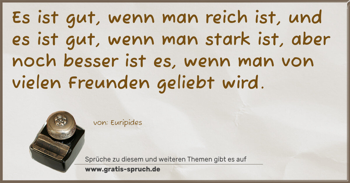 Es ist gut, wenn man reich ist, und es ist gut, wenn man stark ist, aber noch besser ist es, wenn man von vielen Freunden geliebt wird.