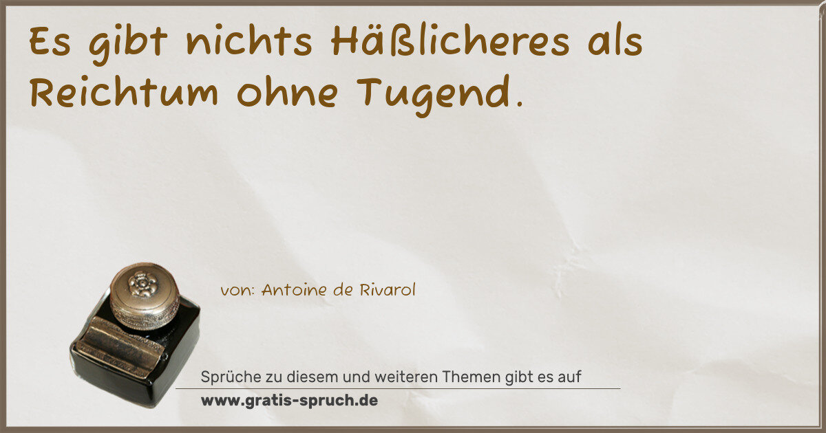 Es gibt nichts Häßlicheres als Reichtum ohne Tugend.