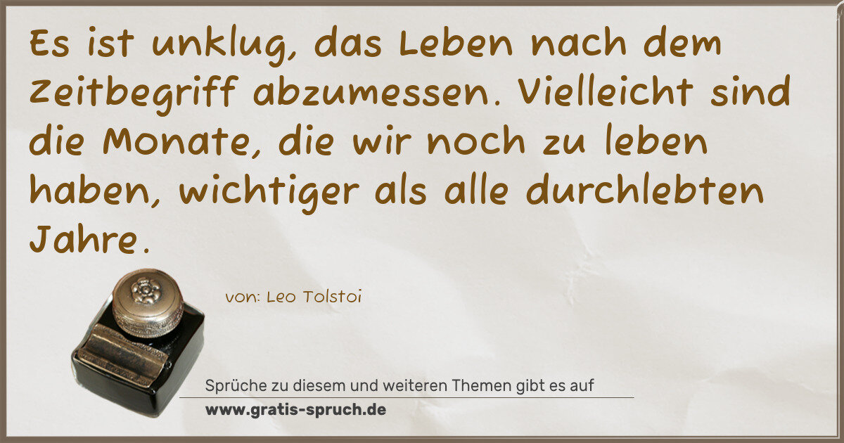 Es ist unklug, das Leben nach dem Zeitbegriff abzumessen. Vielleicht sind die Monate, die wir noch zu leben haben, wichtiger als alle durchlebten Jahre.