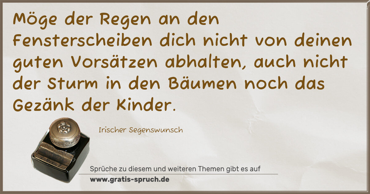 Möge der Regen an den Fensterscheiben dich nicht von deinen guten Vorsätzen abhalten, auch nicht der Sturm in den Bäumen noch das Gezänk der Kinder.