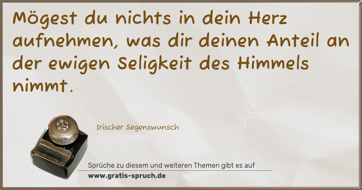 Mögest du nichts in dein Herz aufnehmen, was dir deinen Anteil an der ewigen Seligkeit des Himmels nimmt.