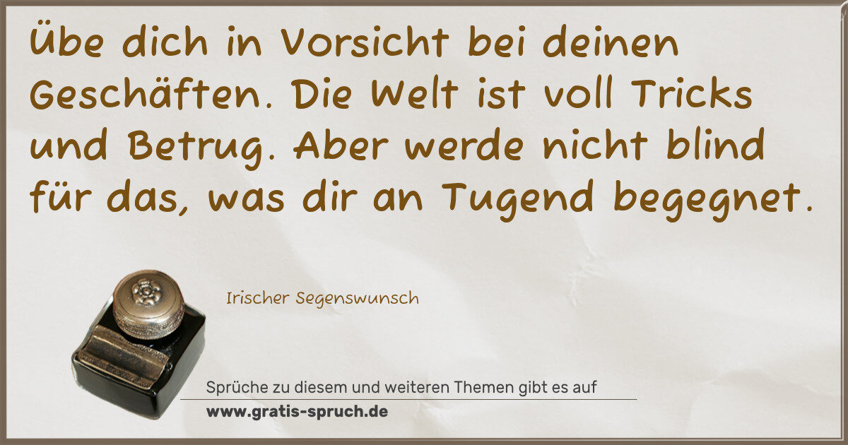 Übe dich in Vorsicht bei deinen Geschäften. Die Welt ist voll Tricks und Betrug. Aber werde nicht blind für das, was dir an Tugend begegnet.