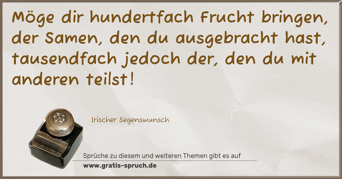 Möge dir hundertfach Frucht bringen, der Samen, den du ausgebracht hast, tausendfach jedoch der, den du mit anderen teilst!