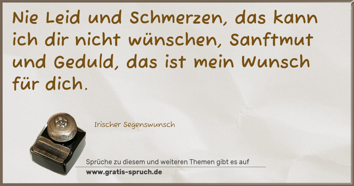 Nie Leid und Schmerzen, das kann ich dir nicht wünschen, Sanftmut und Geduld, das ist mein Wunsch für dich.