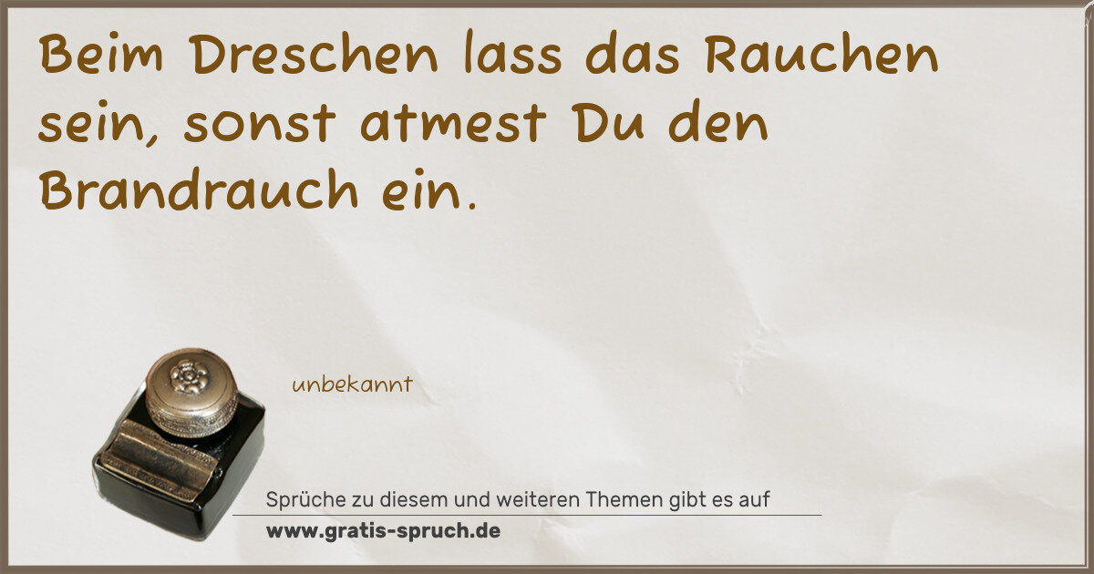 Beim Dreschen lass das Rauchen sein, sonst atmest Du den Brandrauch ein.