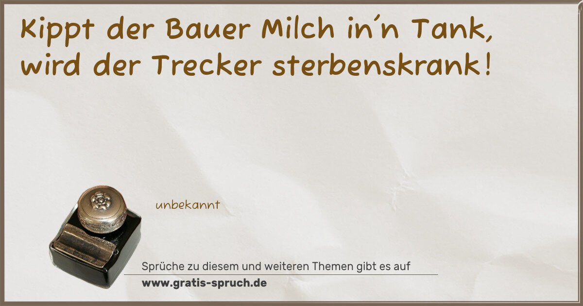 Kippt der Bauer Milch in'n Tank, wird der Trecker sterbenskrank!