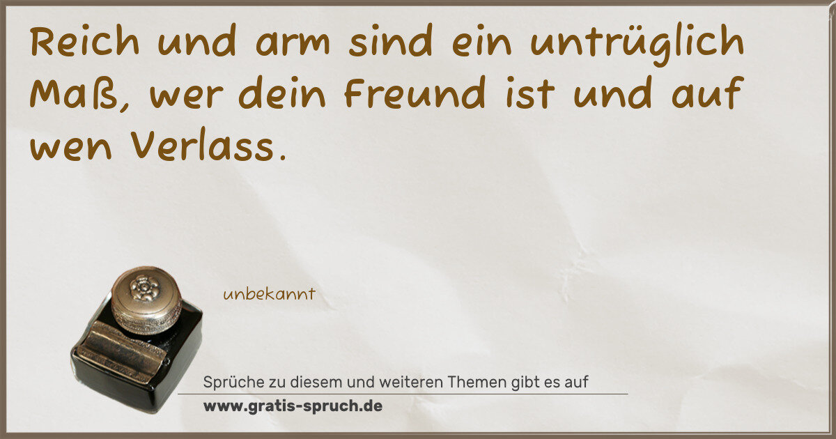 Reich und arm sind ein untrüglich Maß, wer dein Freund ist und auf wen Verlass.