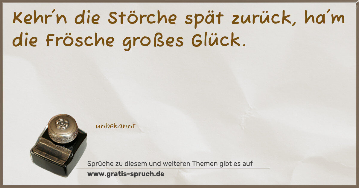 Kehr'n die Störche spät zurück, ha'm die Frösche großes Glück.