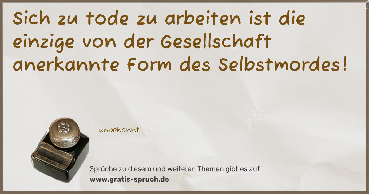 Sich zu tode zu arbeiten ist die einzige von der Gesellschaft anerkannte Form des Selbstmordes!