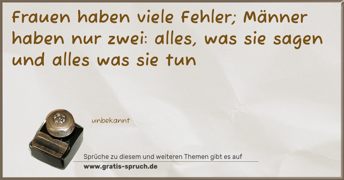 Frauen haben viele Fehler; Männer haben nur zwei: alles, was sie sagen und alles was sie tun