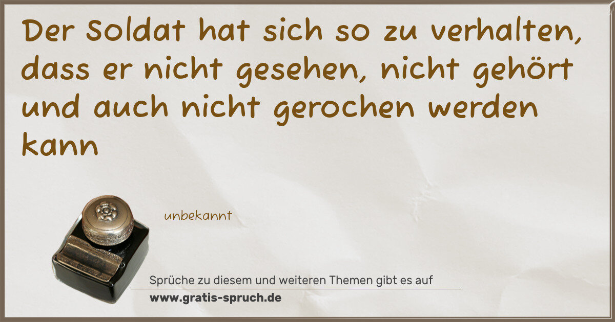 Der Soldat hat sich so zu verhalten, dass er nicht gesehen, nicht gehört und auch nicht gerochen werden kann