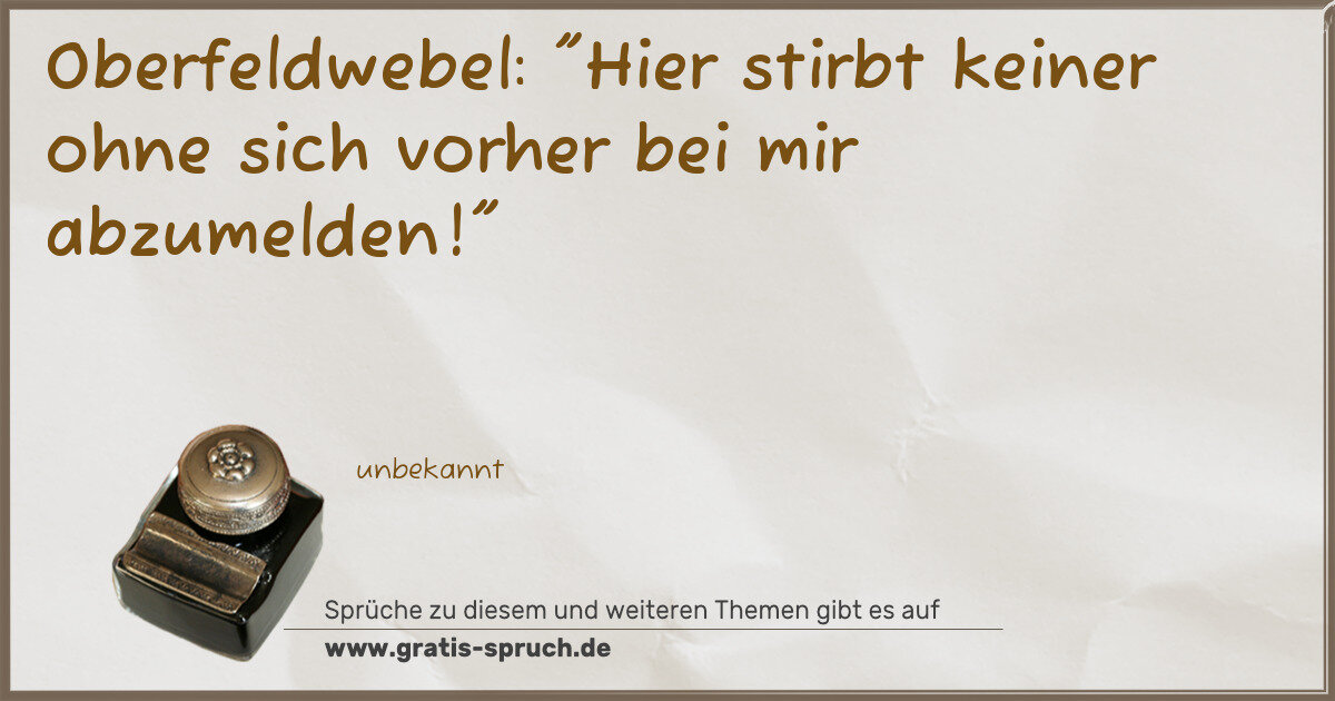 Oberfeldwebel: "Hier stirbt keiner ohne sich vorher bei mir abzumelden!"
