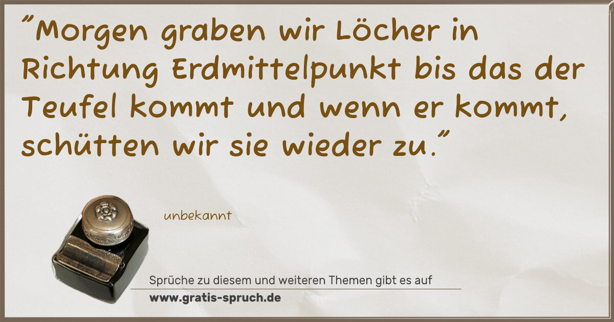 "Morgen graben wir Löcher in Richtung Erdmittelpunkt bis das der Teufel kommt und wenn er kommt, schütten wir sie wieder zu."