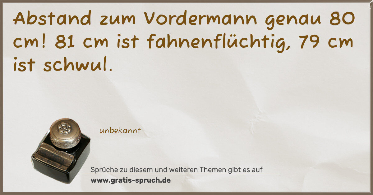 Abstand zum Vordermann genau 80 cm! 81 cm ist fahnenflüchtig, 79 cm ist schwul.
