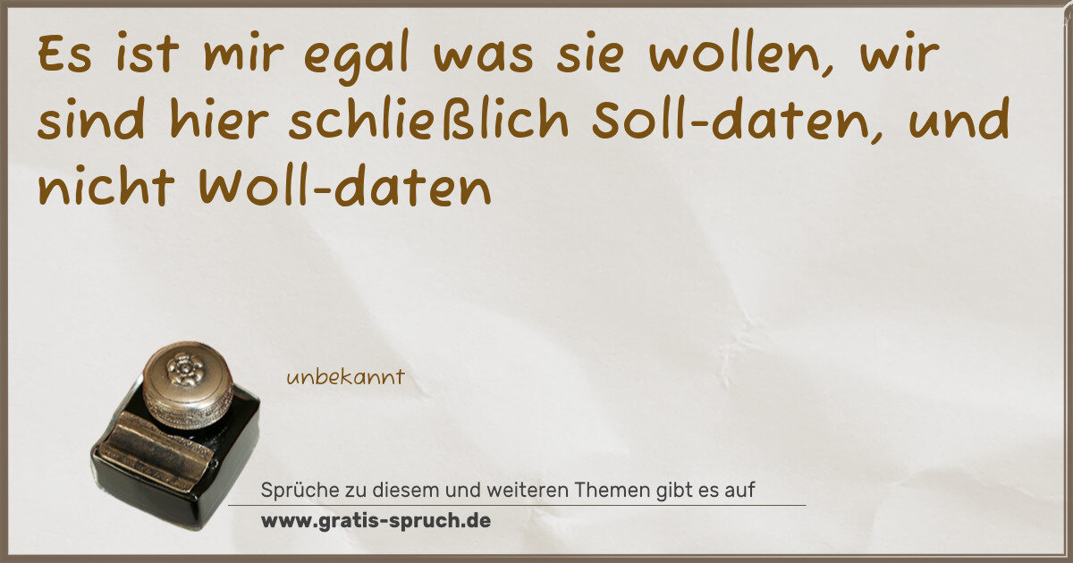 Es ist mir egal was sie wollen, wir sind hier schließlich Soll-daten, und nicht Woll-daten