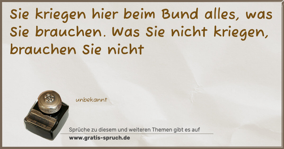 Sie kriegen hier beim Bund alles, was Sie brauchen. Was Sie nicht kriegen, brauchen Sie nicht