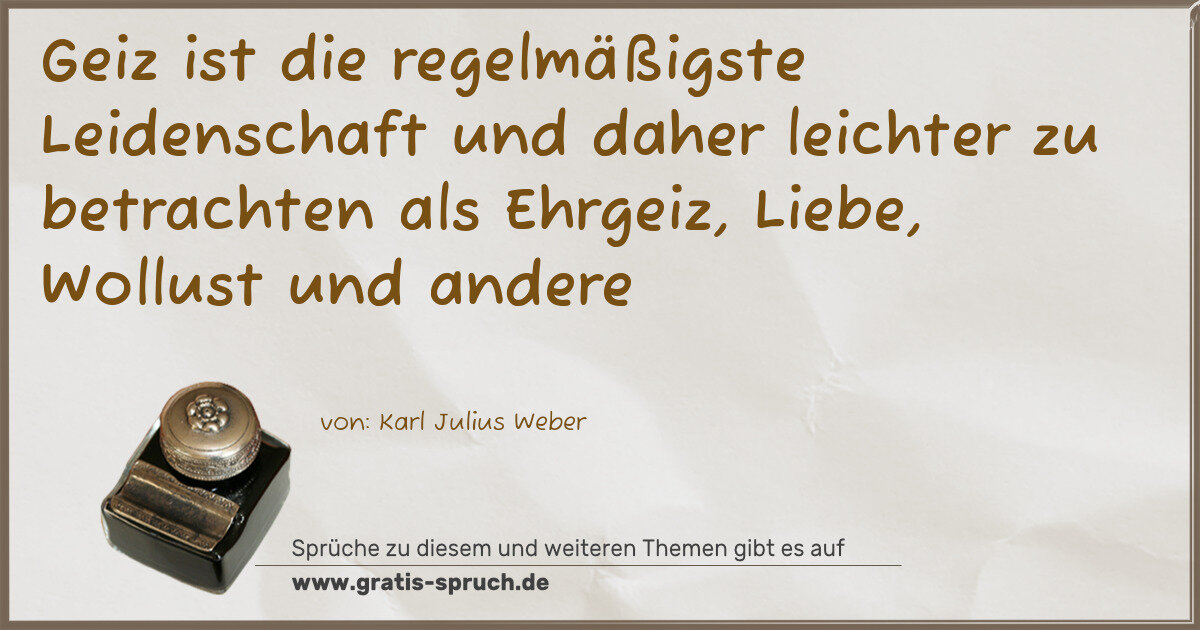 Geiz ist die regelmäßigste Leidenschaft und daher leichter zu betrachten als Ehrgeiz, Liebe, Wollust und andere