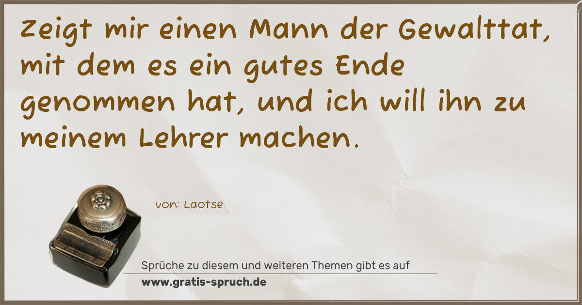 Zeigt mir einen Mann der Gewalttat, mit dem es ein gutes Ende genommen hat, und ich will ihn zu meinem Lehrer machen.