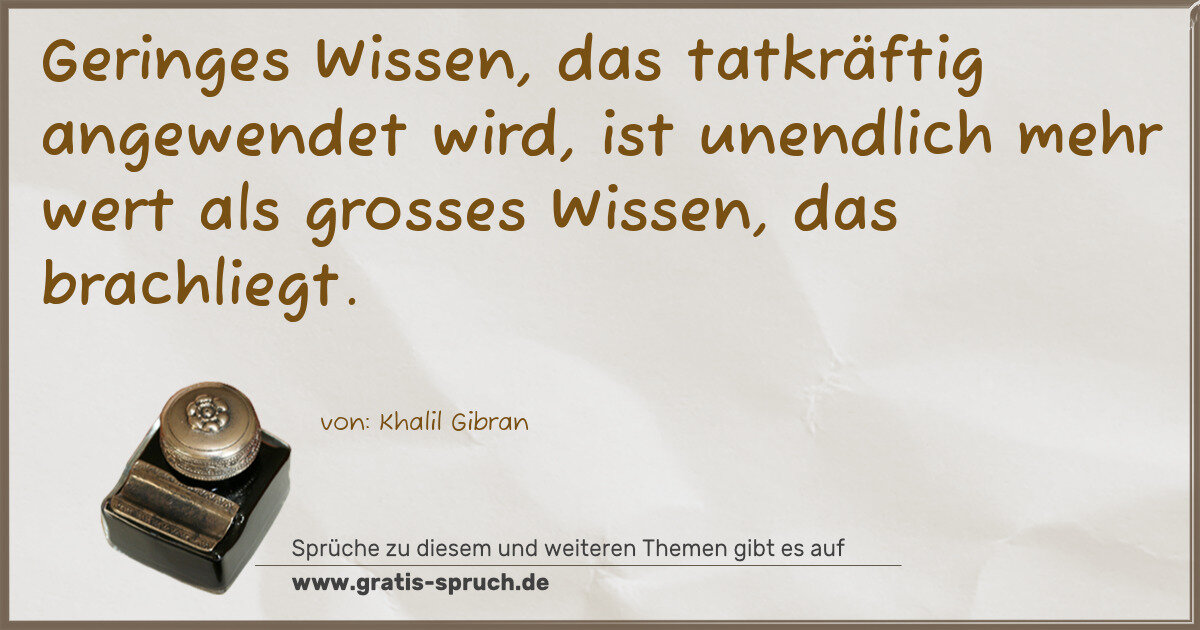 Geringes Wissen, das tatkräftig angewendet wird, ist unendlich mehr wert als grosses Wissen, das brachliegt.