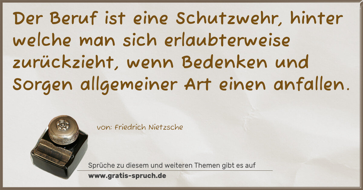 Der Beruf ist eine Schutzwehr, hinter welche man sich erlaubterweise zurückzieht, wenn Bedenken und Sorgen allgemeiner Art einen anfallen.