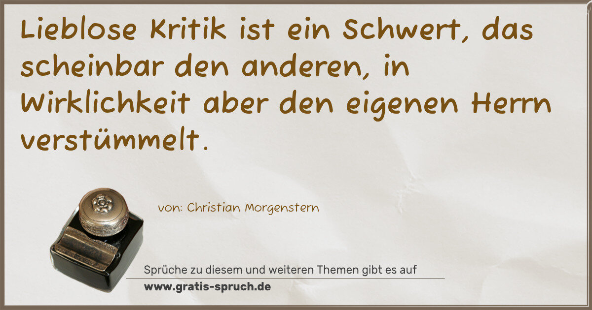 Lieblose Kritik ist ein Schwert, das scheinbar den anderen, in Wirklichkeit aber den eigenen Herrn verstümmelt.