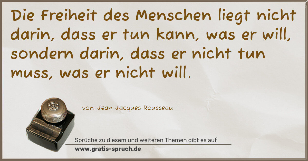Die Freiheit des Menschen liegt nicht darin, dass er tun kann, was er will, sondern darin, dass er nicht tun muss, was er nicht will.