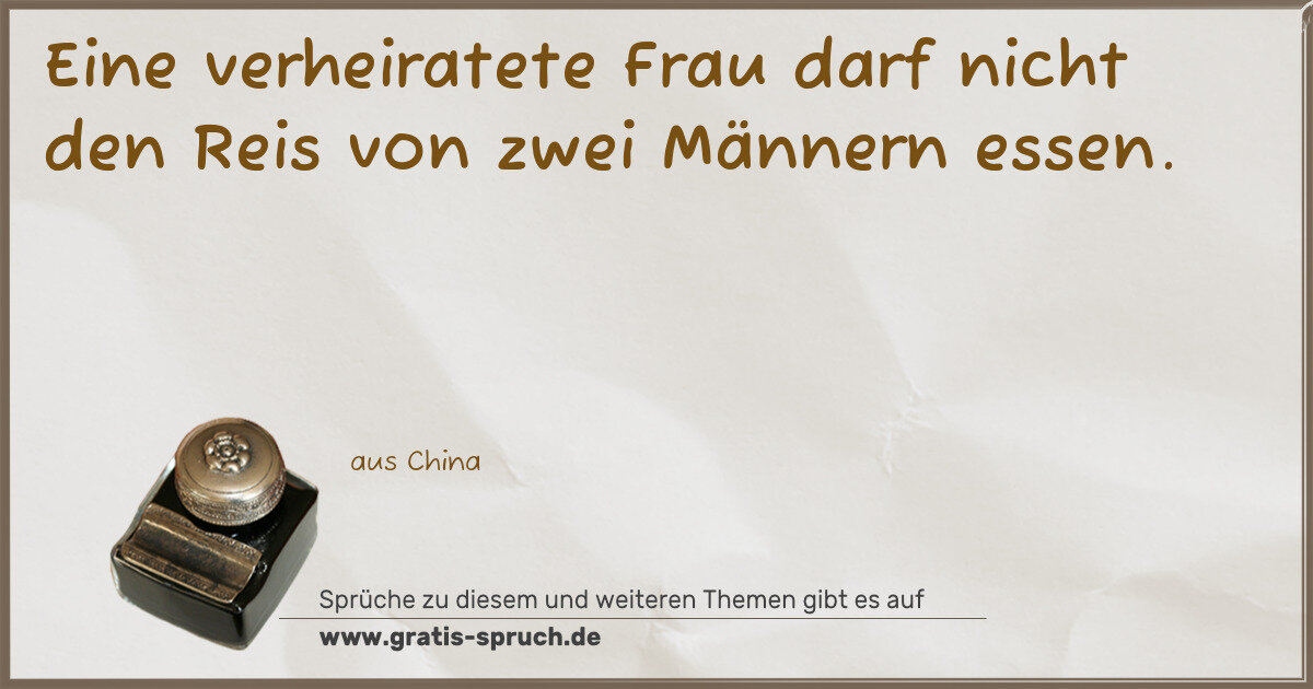 Eine verheiratete Frau darf nicht den Reis von zwei Männern essen.