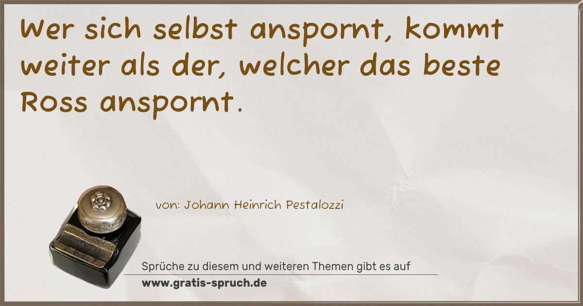 Wer sich selbst anspornt, kommt weiter als der, welcher das beste Ross anspornt.