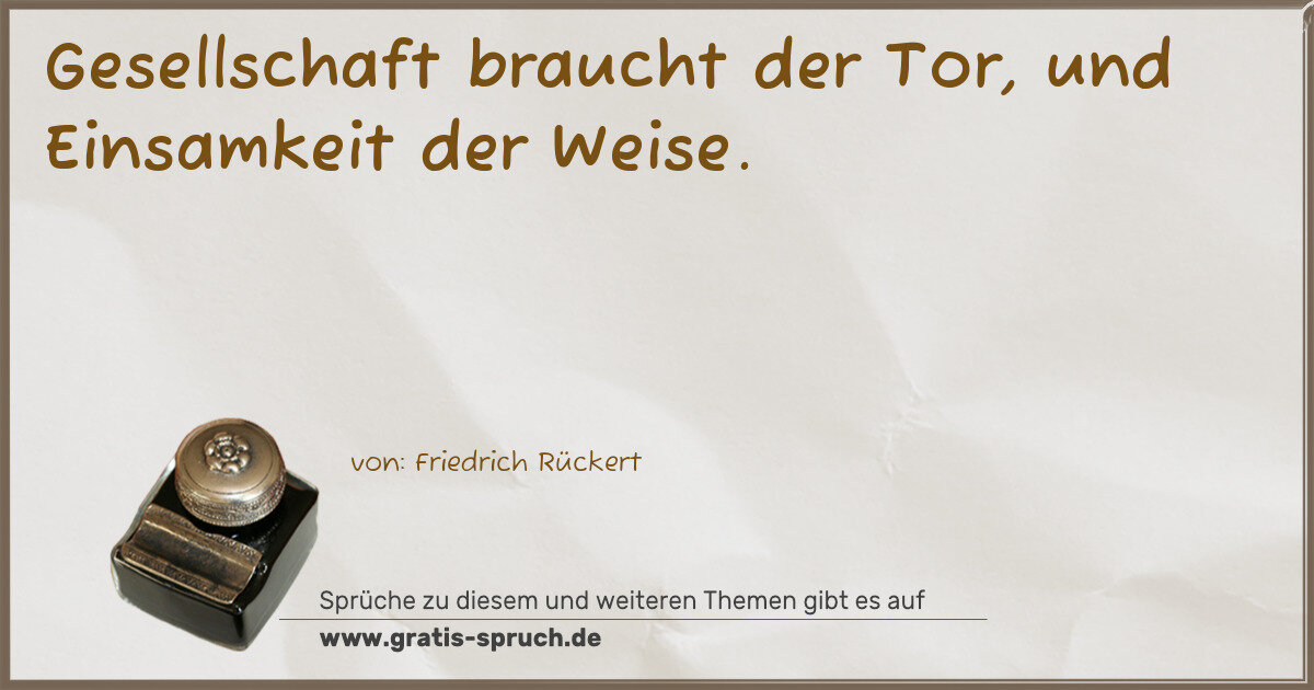 Gesellschaft braucht der Tor, und Einsamkeit der Weise.
