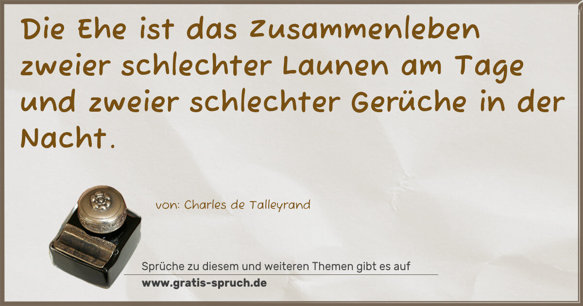 Die Ehe ist das Zusammenleben zweier schlechter Launen am Tage und zweier schlechter Gerüche in der Nacht.