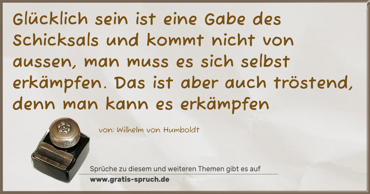 Glücklich sein ist eine Gabe des Schicksals und kommt nicht von aussen, man muss es sich selbst erkämpfen. Das ist aber auch tröstend, denn man kann es erkämpfen