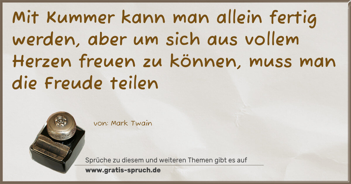 Mit Kummer kann man allein fertig werden, aber um sich aus vollem Herzen freuen zu können, muss man die Freude teilen