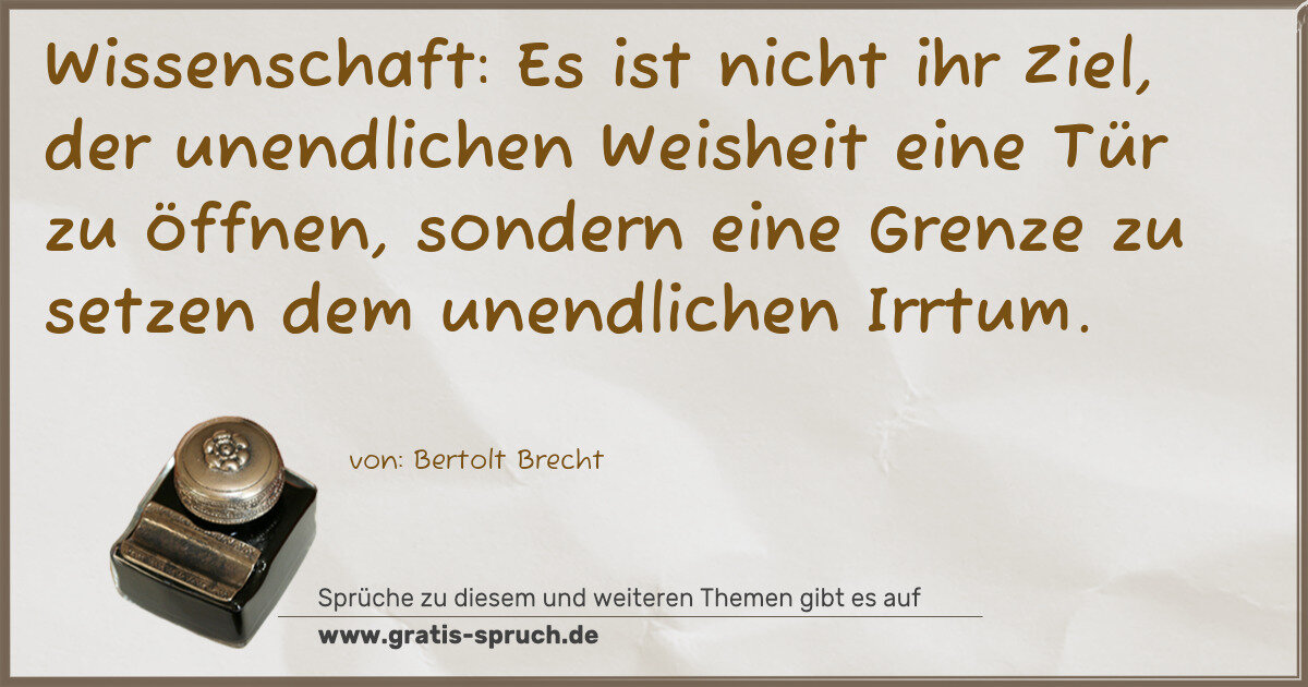 Wissenschaft: Es ist nicht ihr Ziel, der unendlichen Weisheit eine Tür zu öffnen, sondern eine Grenze zu setzen dem unendlichen Irrtum.