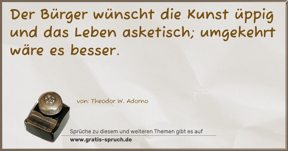 Der Bürger wünscht die Kunst üppig und das Leben asketisch; umgekehrt wäre es besser.