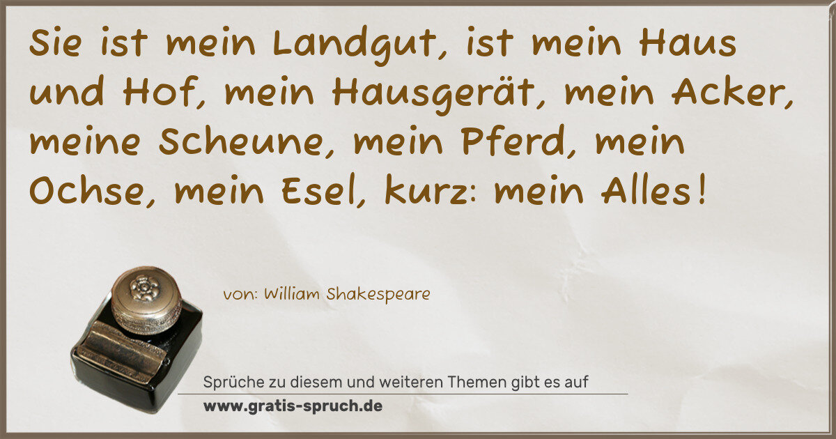 Sie ist mein Landgut, ist mein Haus und Hof, mein Hausgerät, mein Acker, meine Scheune, mein Pferd, mein Ochse, mein Esel, kurz: mein Alles!