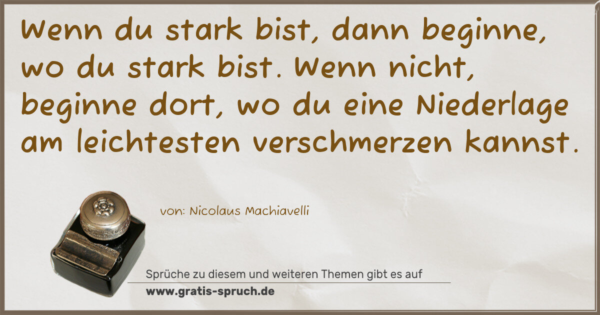 Wenn du stark bist, dann beginne, wo du stark bist. Wenn nicht, beginne dort, wo du eine Niederlage am leichtesten verschmerzen kannst.