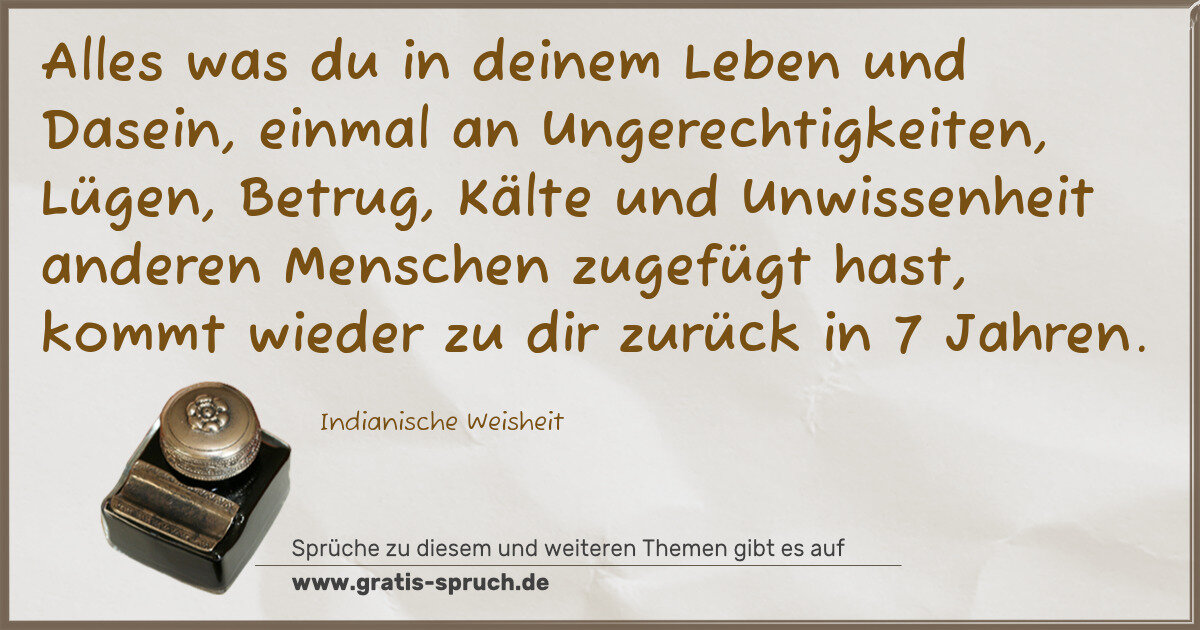 Alles was du in deinem Leben und Dasein, einmal an Ungerechtigkeiten, Lügen, Betrug, Kälte und Unwissenheit anderen Menschen zugefügt hast, kommt wieder zu dir zurück in 7 Jahren.