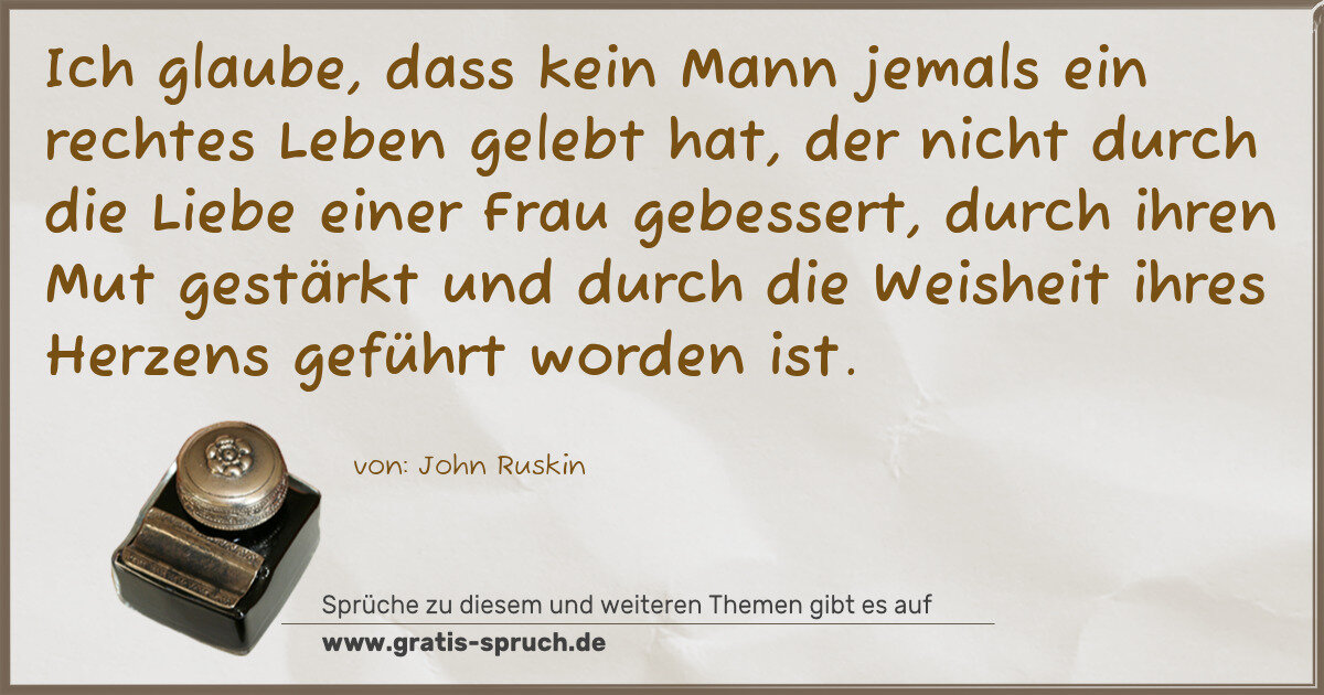 Ich glaube, dass kein Mann jemals ein rechtes Leben gelebt hat, der nicht durch die Liebe einer Frau gebessert, durch ihren Mut gestärkt und durch die Weisheit ihres Herzens geführt worden ist.