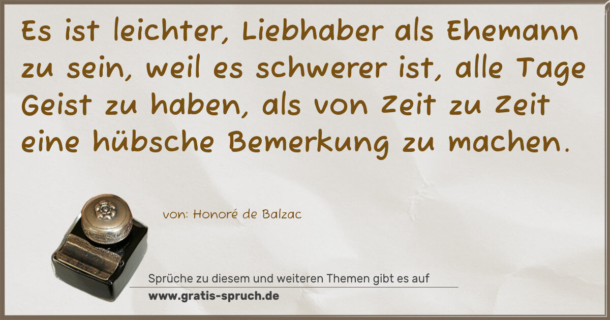 Es ist leichter, Liebhaber als Ehemann zu sein, weil es schwerer ist, alle Tage Geist zu haben, als von Zeit zu Zeit eine hübsche Bemerkung zu machen.