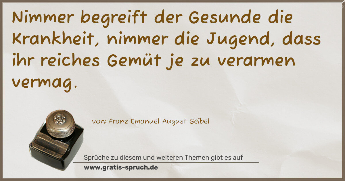 Nimmer begreift der Gesunde die Krankheit, nimmer die Jugend, dass ihr reiches Gemüt je zu verarmen vermag.