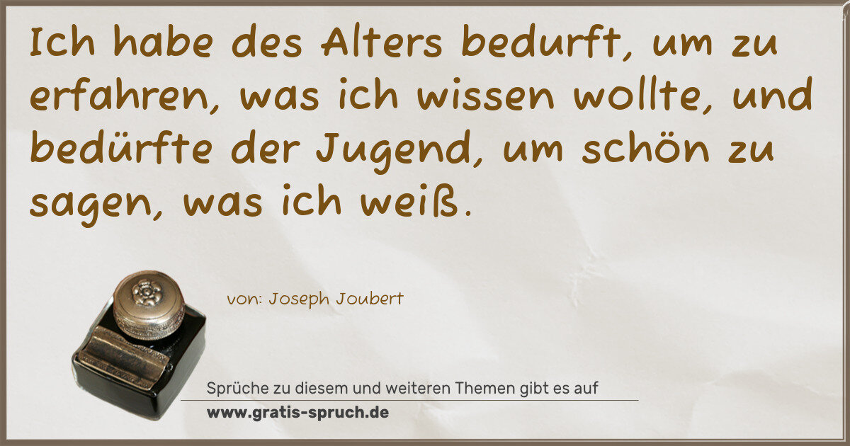 Ich habe des Alters bedurft, um zu erfahren, was ich wissen wollte, und bedürfte der Jugend, um schön zu sagen, was ich weiß.