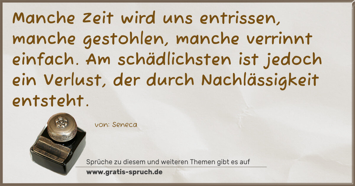 Manche Zeit wird uns entrissen, manche gestohlen, manche verrinnt einfach. Am schädlichsten ist jedoch ein Verlust, der durch Nachlässigkeit entsteht.