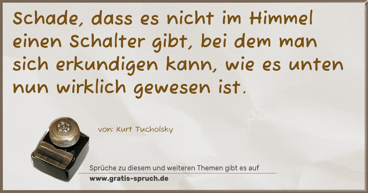 Schade, dass es nicht im Himmel einen Schalter gibt, bei dem man sich erkundigen kann, wie es unten nun wirklich gewesen ist.