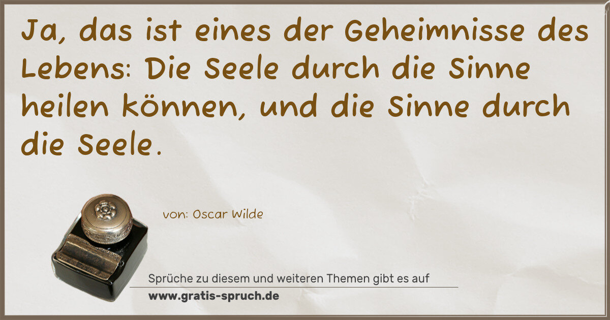 Ja, das ist eines der Geheimnisse des Lebens: Die Seele durch die Sinne heilen können, und die Sinne durch die Seele.