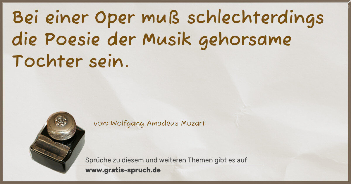 Bei einer Oper muß schlechterdings die Poesie der Musik gehorsame Tochter sein.
