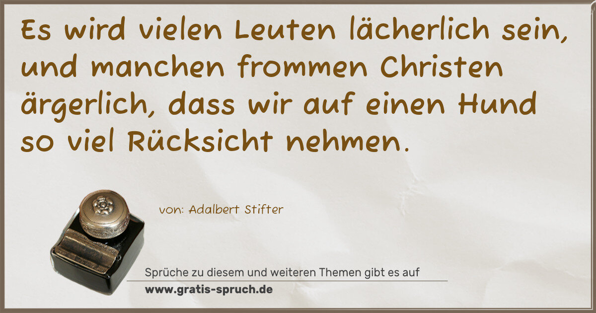 Es wird vielen Leuten lächerlich sein, und manchen frommen Christen ärgerlich, dass wir auf einen Hund so viel Rücksicht nehmen.