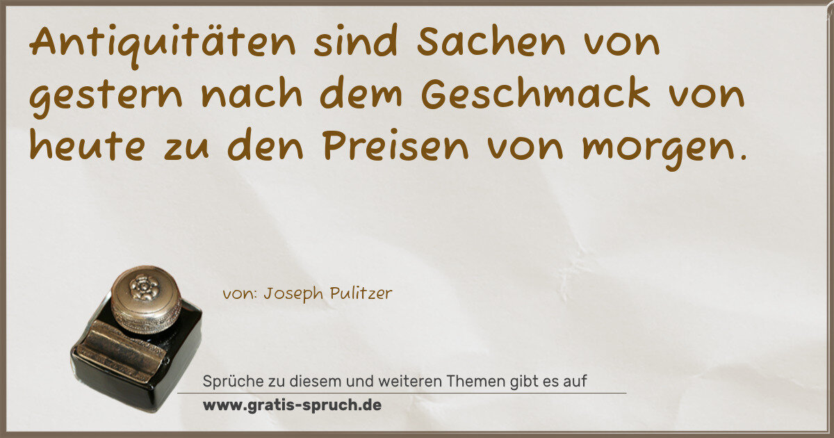 Antiquitäten sind Sachen von gestern nach dem Geschmack von heute zu den Preisen von morgen.