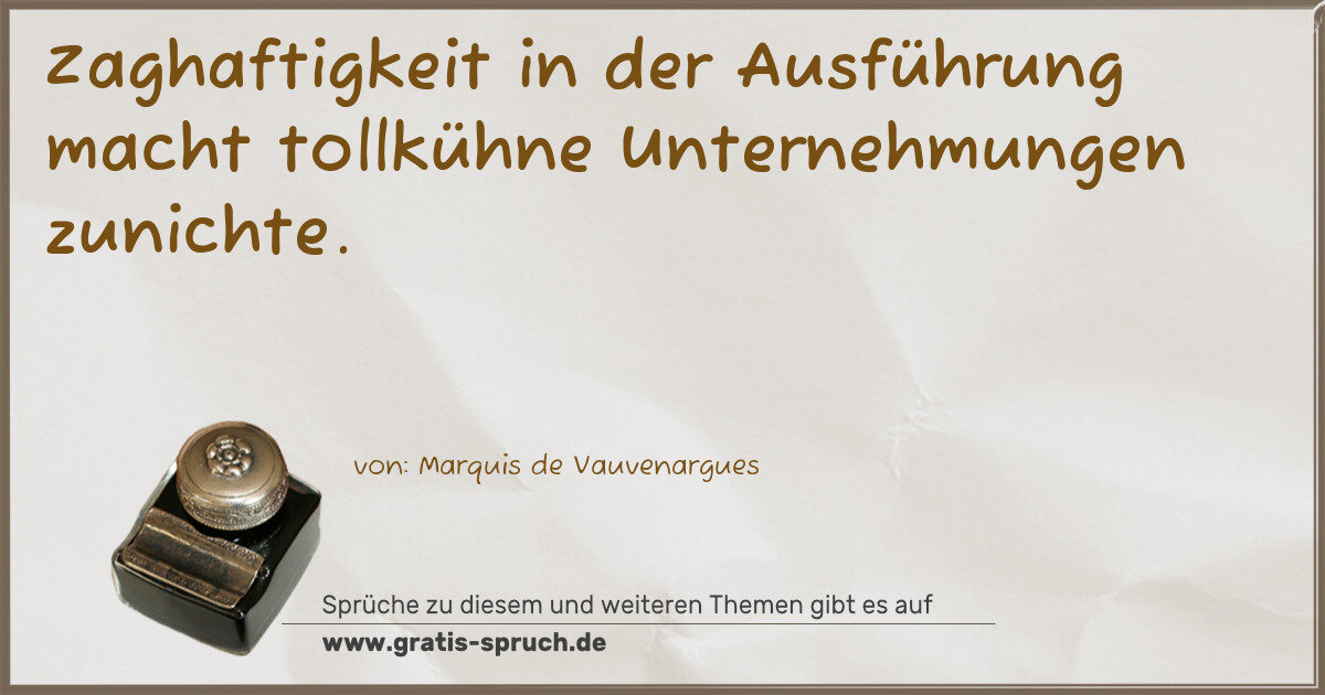 Zaghaftigkeit in der Ausführung macht tollkühne Unternehmungen zunichte.