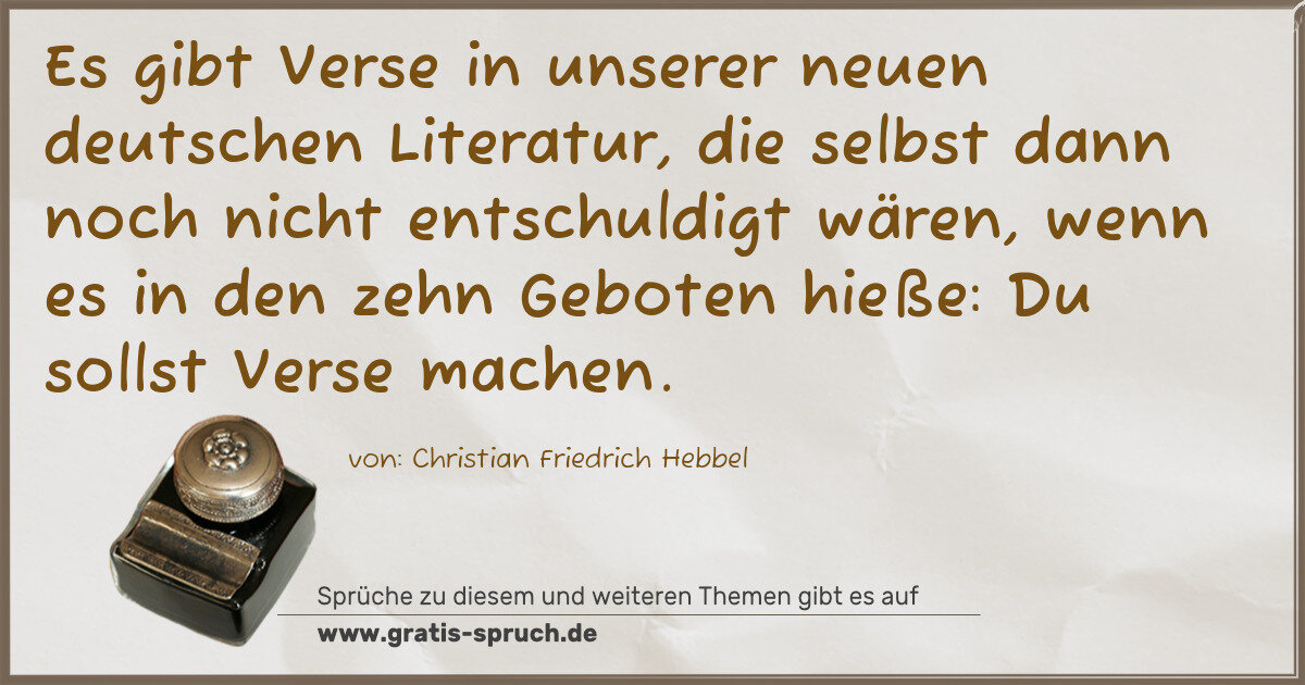 Es gibt Verse in unserer neuen deutschen Literatur, die selbst dann noch nicht entschuldigt wären, wenn es in den zehn Geboten hieße: Du sollst Verse machen.