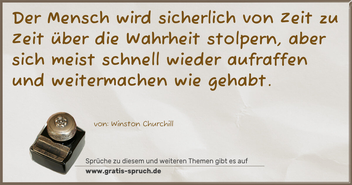 Der Mensch wird sicherlich von Zeit zu Zeit über die Wahrheit stolpern, aber sich meist schnell wieder aufraffen und weitermachen wie gehabt.